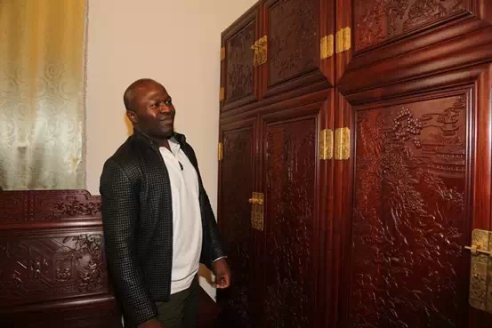 Mr. RAYINS showed great interest in Longrich rose wood furnitures