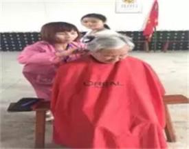 志愿者幫忙老人整理床鋪和理發(fā)