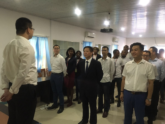 10月11日,徐董攜夫人王穎娟女士,在國際區總裁錢軍彪和非洲區總經理賈典的陪同下,蒞臨隆力奇尼日利亞分公司考察指導,受到尼日利亞分公司全體員工的熱烈歡迎。