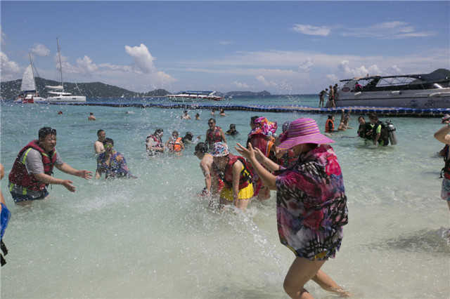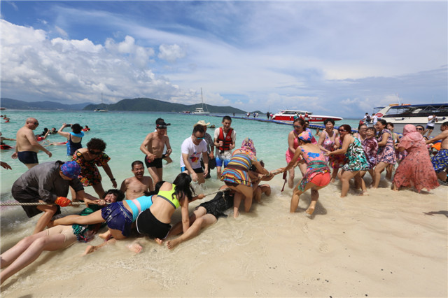 漫游珊瑚島從酒店出發,我們分批乘坐快艇來到珊瑚島享受一天的日光浴。摩托艇、拖拽傘、海底漫步、香蕉船、浮潛、沖浪等一系列海上娛樂活動讓我們樂此不疲,玩累了,可以躺在專屬隆力奇區域的沙灘椅上,來一瓶泰式啤酒,遠眺海面上嬉鬧的人群。海灘邊上不斷傳來吶喊助威的聲音,由團隊自發組織的海上拔河比賽正在進行,勝負不重要,這種激情、挑戰感染著每一位隆力奇人。夕陽西下,在導游的引領下,我們又享受了一次正宗的泰式spa,這種極致體驗去除了我們一天的疲乏,各式精油的香氣彌漫開來,迎來的是美美一頓大覺。