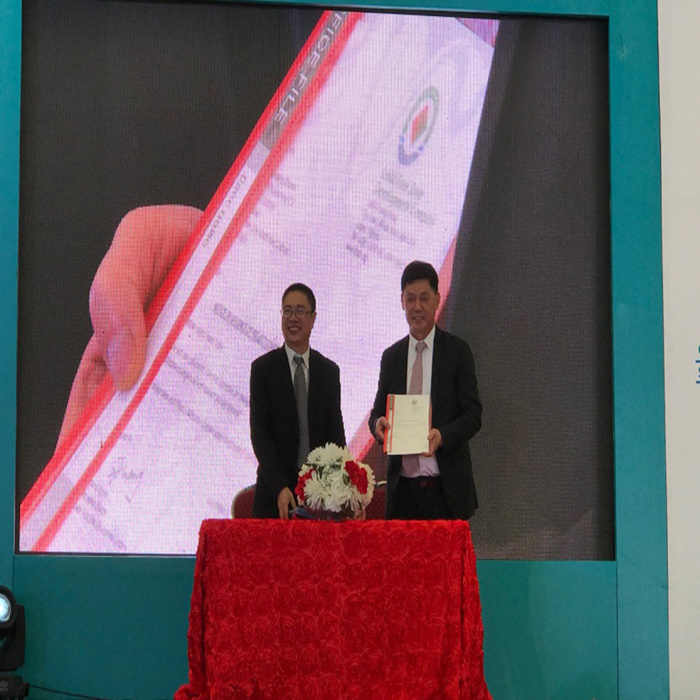 萊基自貿區CEO黃習工向隆力奇副總裁徐之倫授予工廠開工授權證書