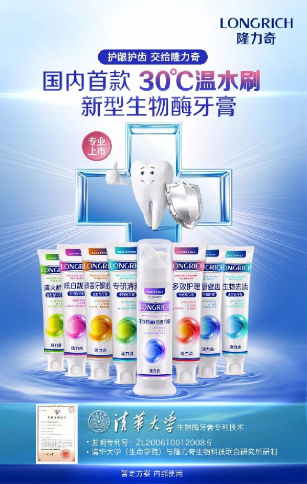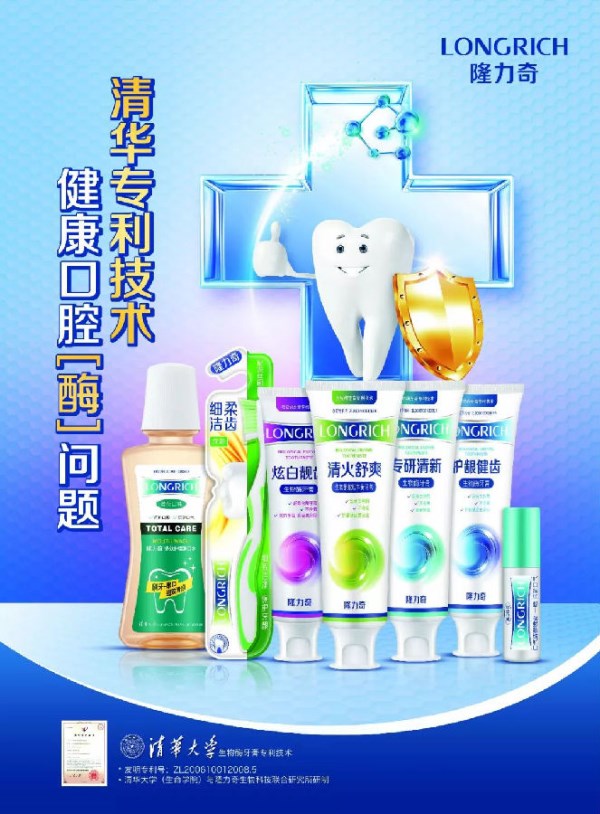 據悉,從2006年開始,歷經多年時間,根據消費者的不同需求,隆力奇生物酶牙膏在生物酶技術上進行了衍生,推出了不同功效的生物酶系列牙膏。該系列牙膏不添加硫酸鹽發泡劑,特別添加溫和型發泡劑,既減少了對生物酶的破壞,又減少了對口腔黏膜的刺激,泡沫細膩、溫和、易沖洗,具有防治齲齒、去除牙菌斑、去除口腔細菌等功效。