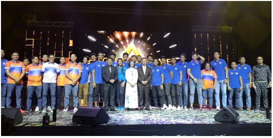 ▲徐之偉同菲律賓分公司贊助籃球隊合影