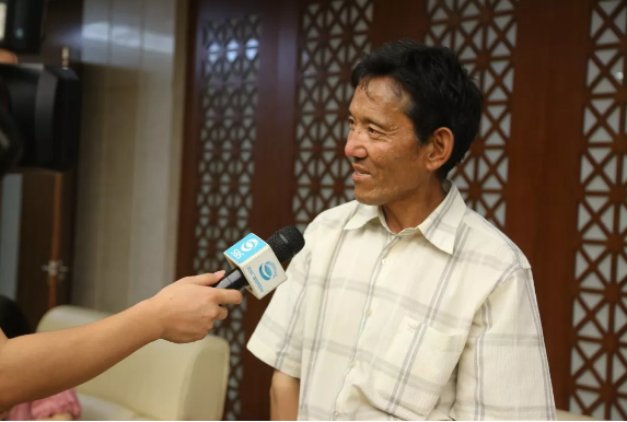▲次仁拉姆、次仁曲吉及父親贈送徐之偉錦旗