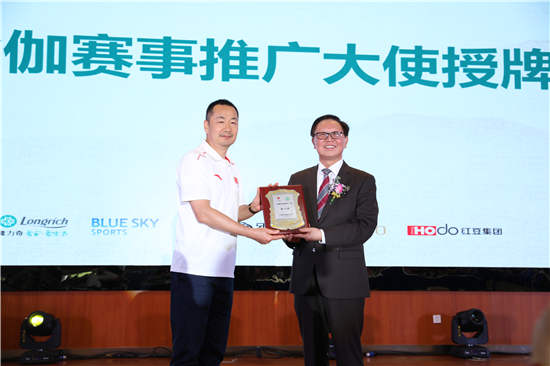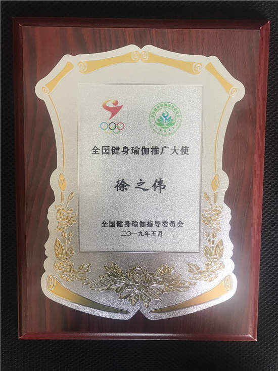△國家體育總局社體中心副主任楊善德授予隆力奇董事長徐之偉“2019全國瑜伽賽事推廣大使”榮譽牌匾