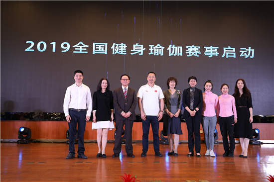 △2019年全國健身瑜伽賽啟動儀式領導合影