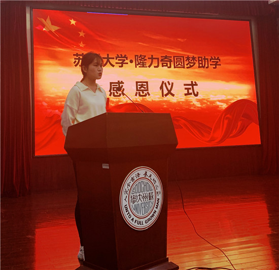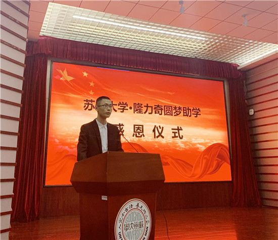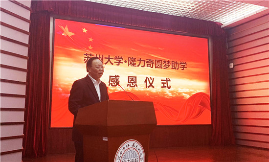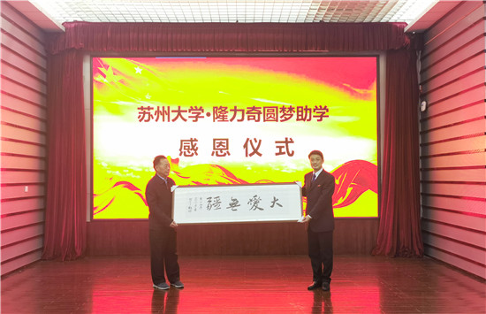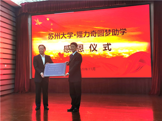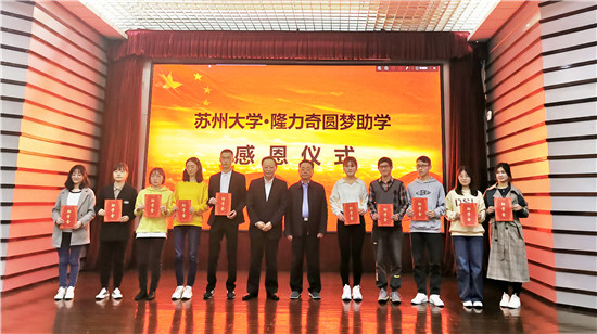 11月15日,“莘莘學子夢濃濃助學情——蘇州大學·隆力奇圓夢助學感恩儀式”在蘇州大學隆重舉行。蘇州市關工委主任秦興元,蘇州市關工委副主任、市關心下一代基金會副理事長王溢,蘇州市關工委副主任、市關心下一代基金會監事長徐銘陽,蘇州大學黨委副書記鄧敏,隆力奇董事長徐之偉等領導出席了感恩儀式。