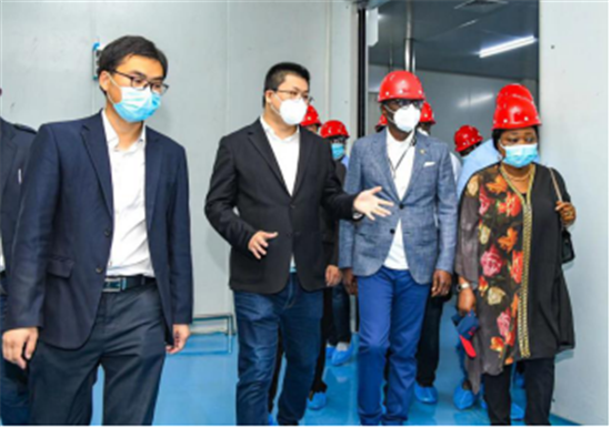 日前,尼日利亞拉各斯州長Babajide Olusola Sanwo-Olu及多名隨行部長組成的考察團來到隆力奇克勞麗拉格斯萊基工業園參觀考察。隆力奇集團副總裁、國際部總裁賈典、克勞麗尼日利亞工廠總經理馮大偉、浙江鴻翔海外公司總經理徐騰陪同了考察。