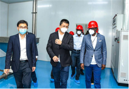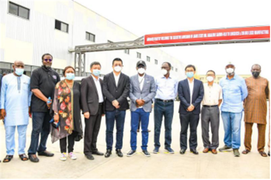 賈典向Sanwo-Olu州長一行介紹尼日利亞工廠