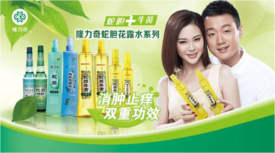 走吧,花露水該換代了!2014年,隆力奇全力塑造的功效型牛黃花露水,聚焦花露水的品類升級和換代。以蛇膽+牛黃,“消腫解毒”雙重功效提煉出來,兩款中藥級別的花露水,輔以法國名貴香料,蛇膽:祛風除濕、清涼止癢、解毒祛痱。牛黃:清香祛熱,消腫解毒。隆力奇功效型花露水——蛇膽牛黃花露水,以黃金單品,帶動蛇膽系列功效型花露水品類為升級策略,形成品類藍海。同時點亮更多輔助賣點,如:黃金驅蚊比例5%避蚊胺(DEET),8小時驅蚊,法國名貴香料等,在這樣的藍海之下,隆力奇花露水隆重推出以佟大為、關悅夫婦傾情代言的“花露水換代了”為口號,牛黃花露水黃金單品帶動全系列花露水產品一起,一氣呵成,引爆花露水更新換代的潮流。