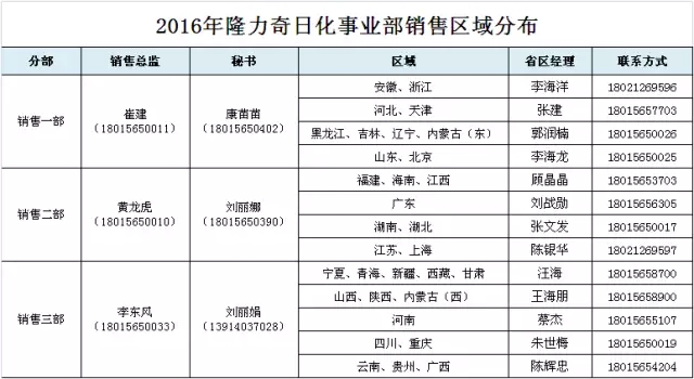 2016年,隆力奇日化銷售事業(yè)將把全國(guó)銷售區(qū)域合理統(tǒng)籌劃分為3個(gè)銷售分部,由3位銷售總監(jiān)分部管理,精耕細(xì)作,打造冠軍團(tuán)隊(duì)。