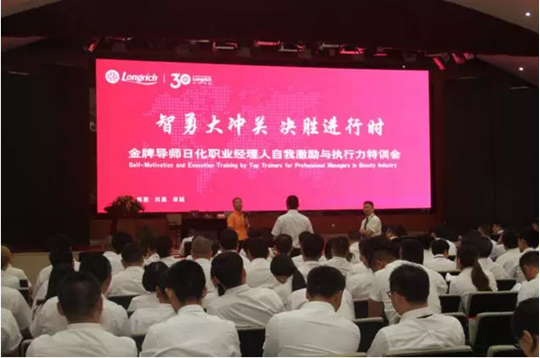 7月13日,為實現日化職業經理人能力質變性提升和激勵市場銷售突破性進展,隆力奇隆重舉辦了主題為“智勇大沖關·決勝進行時”金牌導師日化職業經理人特訓會,特邀上海交通大學客座教授黃志強前來培訓指導。公司日化事業部總經理陶春榮、品牌推廣部總監常樹永、營銷一部總監崔建、營銷二部總監黃龍虎、營銷三部總監李東風以及來自全國各地的二百多位日化職業經理人參加了本次特訓會。