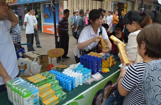 在現場展銷環節,隆力奇再次得到青島市民的追捧,小小的展銷臺被圍的水泄不通,組委會不得不臨時抽調志愿者協助維持秩序。市民王小姐說;“每年步入秋季,包里總會備上一支隆力奇護手霜,好多年了,還是這么便宜,而且現在還熱么熱心公益,當然要捧下場了。”