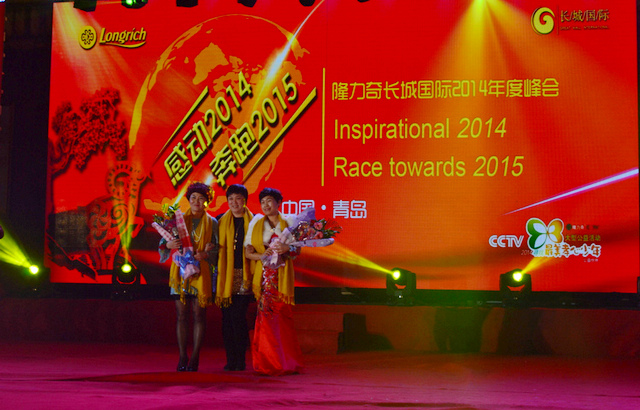 伴隨著斗志昂揚的開場秀與歌曲《長城好男兒》,峰會拉開了華美的序幕。高級經銷商王家成先生為大會致開幕詞。王總在分享中回顧了2014年的點點滴滴,感謝朋友們一路的相隨相伴。隨后展望了2015年的宏偉愿景。緊接著,隆力奇青島分公司經理劉旻女士致祝賀詞,劉總首先代表分公司向拼搏在市場一線的經銷商表示感謝,因為有了大家的努力與付出,才有了隆力奇在山東半島的茁壯成長。劉總還向大家表達了對2015年的期許,希望與大家攜手再創輝煌。