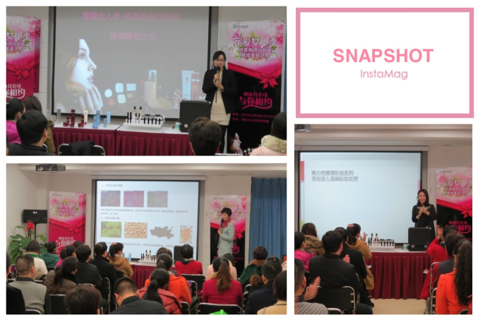 活動由分公司副經理楊蓓蓓主持,首先是市場講師,隆力奇高級經理申華省老師為與會朋友介紹了皮膚基礎知識,針對干燥、斑點、皺紋三大問題,隆力奇雅璨給出了補水、美白、抗衰老肌膚保養三部曲的應對方案,申老師著重講解了雅璨三大系列護膚品的功效。