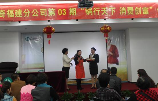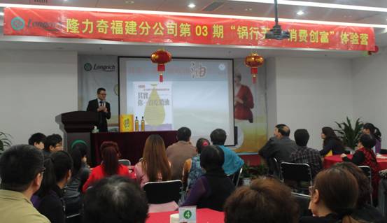 接下來,由隆力奇福建分公司總經理鄭錦星先生登臺,講解隆力奇公司的膳祖臻藏山茶油,上市三年以來,銷量持續增加,好評不斷。大家都知道,食用油是每個中國家庭必不可少的做飯材料,而血壓血脂偏高又是許多國人無法回避的問題。隆力奇膳祖臻藏山茶油結合傳統壓榨工藝和先進的物理冷榨技術,采集原生態有機茶樹優質油茶,經過28道立體三維物理過濾,壓榨出保留原有營養和香味的山茶油。隆力奇膳祖臻藏山茶油具有較高的油酸和亞油酸,較低的飽和脂肪酸。既能滿足日常飲食用油的口味追求,又能夠預防人體血脂,血壓的增高,改善身體健康。