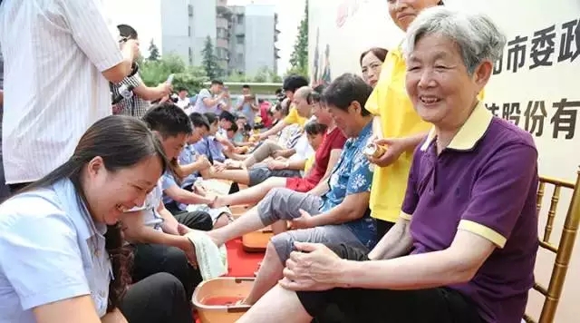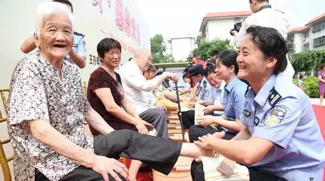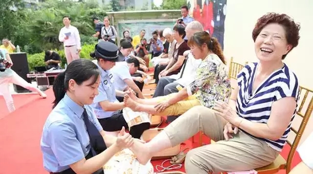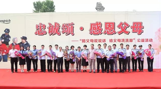 當政法干警為父母拖下鞋子,試試水溫,親自為父母洗洗腳,算是兒女表達對父母的孝心。隆力奇河南分公司志愿者為可愛可敬的政法委干警和他們的父母送上鮮花,簇擁在鮮花下,父母與兒女臉上都露出了燦爛的笑容。
