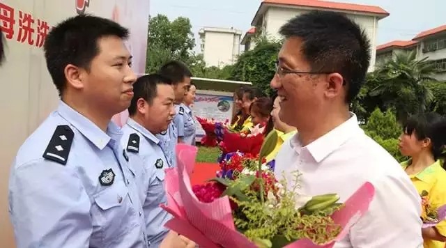 政法委干警的父母在隆力奇河南分公司志愿者的攙扶下走上舞臺,當干警們手捧鮮花,親自獻給自己的父母,并鄭重地向自己的父母敬禮時,干警的眼里含著感恩的淚水擁抱父母,父母感動了,現場的所有人都感動了!這鮮花、這擁抱都是久違的,是很多政法委干警的第一次擁抱父母。