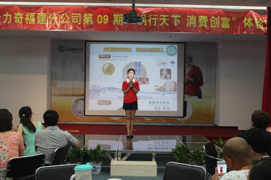 在體驗營的最后,隆力奇福建分公司的高級經(jīng)銷商韓斌先生,上臺分享了自己的五年來經(jīng)歷和隆力奇消費創(chuàng)富的健康理念,只要把我們優(yōu)質(zhì)的隆力奇產(chǎn)品分享給我們周邊的人,就能把事業(yè)和健康生活完美的結(jié)合起來,就可以的能夠消費創(chuàng)富,贏得健康和財富,成就精彩人生。