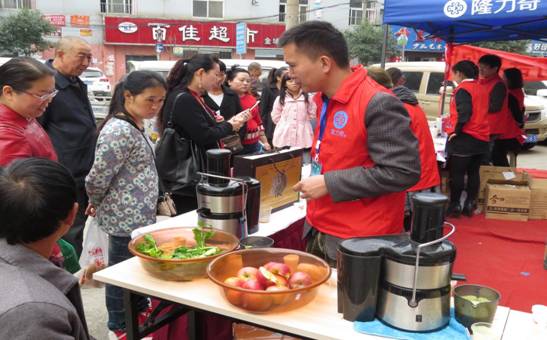 現場,通過用果蔬萃取機為群眾榨取果汁,衛生巾講解、水機講解示范等展示隆力奇優秀產品。精彩的講解,贏得了居民的好評,紛紛前來圍觀。