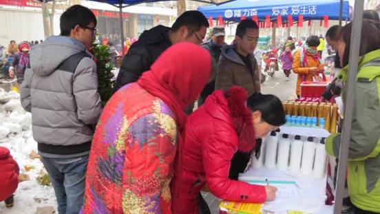 活動隨著鞭炮聲的響起,在上午10:00正式拉開序幕。雖然大雪還沒有融化,天氣十分的寒冷,卻擋不住附近社區居民熱情的腳步,聞訊踏來爭相購買物美價廉的隆力奇產品。活動以一首隆力奇專屬制作的《江南之戀》開場,活動現場掌聲熱烈,群情振奮,消費者對隆力奇產品的肯定與支持溢于言表。