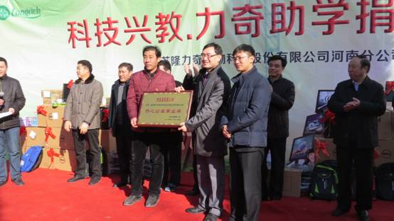隨后大家一同將20臺(tái)電腦、80個(gè)書包文具盒等總價(jià)值10萬(wàn)余元的學(xué)習(xí)用品頒發(fā)到學(xué)生手中,并祝福小朋友們健康快樂(lè)成長(zhǎng)。蔡寨小學(xué)的孩子們?yōu)榱吮硎緦?duì)隆力奇愛(ài)心捐贈(zèng)的感謝, 特意準(zhǔn)備了舞蹈、詩(shī)歌朗誦。同時(shí),校長(zhǎng)郭秀峰為隆力奇河南分公司頒發(fā)了熱心事業(yè)公益獎(jiǎng)牌。此次捐贈(zèng)活動(dòng),我們不僅是帶來(lái)了電腦,更是為孩子們帶來(lái)了歡樂(lè) , 我們真正想要的并不是榮譽(yù)證書,而是孩子們能夠更好地享受教育。