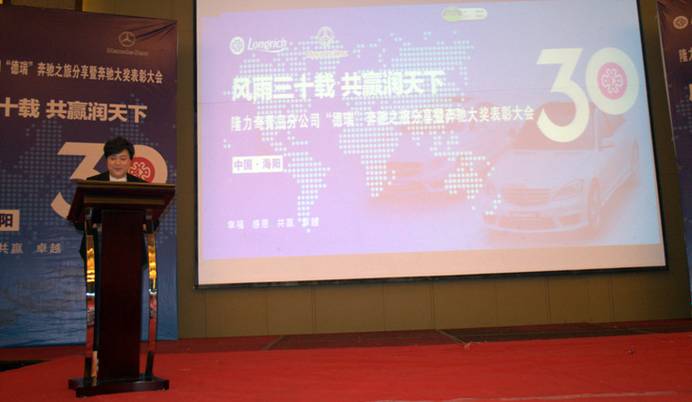 5月21日,隆力奇青島分公司“德瑞”奔馳之旅分享暨豪車大獎表彰在海陽市隆重舉行。隆力奇直銷中國區南區總監符士良先生,青島分公司經理劉旻女士,教育部高級講師馬俊平先生,市場領袖王家成先生,趙發平女士等與300余名優秀經銷商共同見證會議盛況。