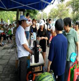 6月21-22日,河北分公司在河北牛城---邢臺組織10余名愛心志愿者,為河北省中考考生及家長提供愛心免費萃取果汁。當沁人心脾的新鮮果汁遞到路人手中的時候,大家都對公司的產品和熱情的義工豎起了大拇指!河北分公司經理鄭麗麗也來到活動現場,冒著40度的高溫,給朋友們介紹隆力奇公司及產品。通過志愿者們辛勤的付出和耐心講解,顧客進一步了解了隆力奇公司近年來的轉型和經營模式。