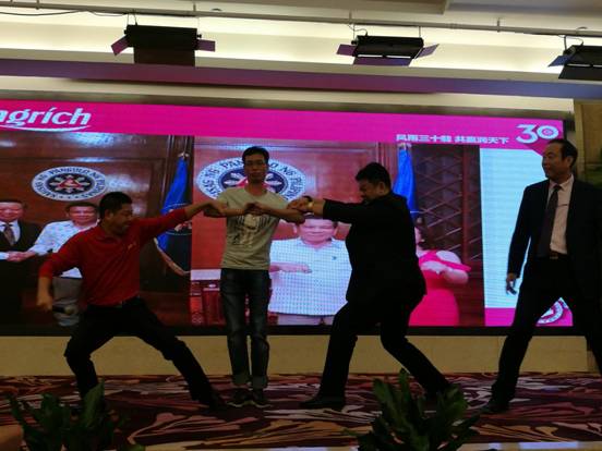 趙建華先生的分享震撼了現場所有家人,博得一次又一次興奮的掌聲。接著聚德國際領袖孫國理先生上臺分享事業成功的秘訣。孫總從1995進入直銷行業以來,經歷無數次行業變遷,市場風起云涌。而這一次,魔力鞋將是隆力奇家人們一次新的創富機會,社會財富將重新洗牌,新的財富資源將流向優質股權的擁有者——魔力鞋代理商們。接下來將是一個“人無股權不富,持優質股者贏未來”的時代。