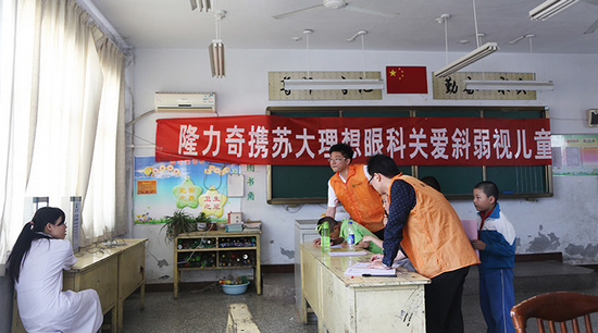 On May 21st 2014, tens of volunteers from Longrich Loving Foundation? Longrich Loving-family Ophthalmology and doctors from Lixiang Eye Hospital visited Jinan Shao’er Primary School to examine and offer free treatment to children with strabismus or amblyopia.