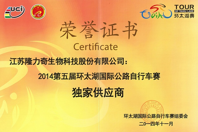 Longrich was nominated Exclusive Sponsor of the Tour of Taihu Lake 2014