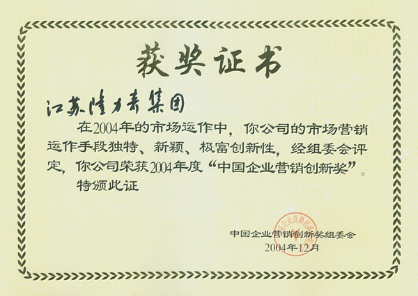 2004: Longrich was rewarded for its innovative, creative efforts in marketing operation; the company won the 2004 annual "Chinese Enterprise Marketing Innovation Award"