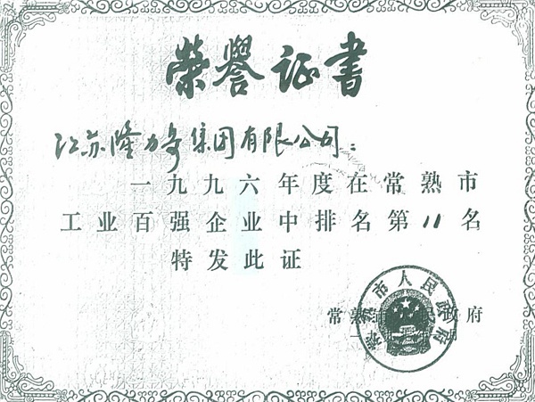 1996: Changshu Snake Industry Company was honored by Changshu People's Government, the Company was ranked 18th among 100 Top Company of Changshu.
