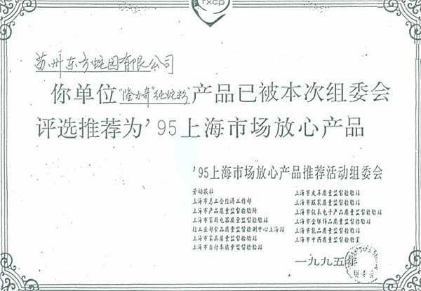 1995: Longliqi Pure Snake Powder products were designated in Shanghai market as '' Trusted Product ''