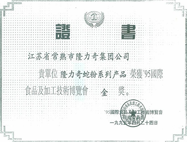 1995: Longliqi Pure Snake Powder products won a prize at the International Food and Processing Technology Expo of the year 1995