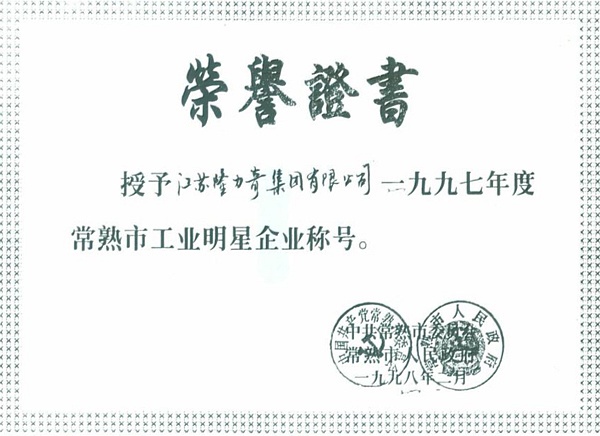 1997: Changshu Snake Industry Company was honored by Changshu People's Government, the Company was ranked 11th among 100 Top Company of Changshu.