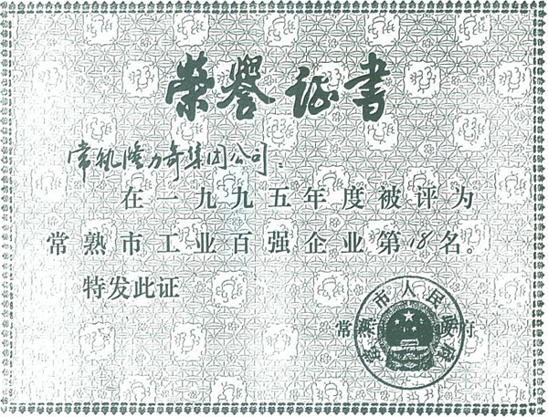 Ranked 11th among 100 Top Company of Changshu