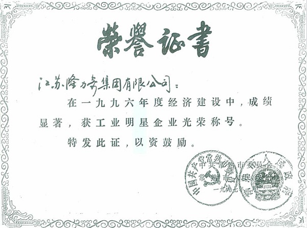 1996: Changshu Snake Industry Company won the '' 1995 Star Industrial Enterprise Prize ''
