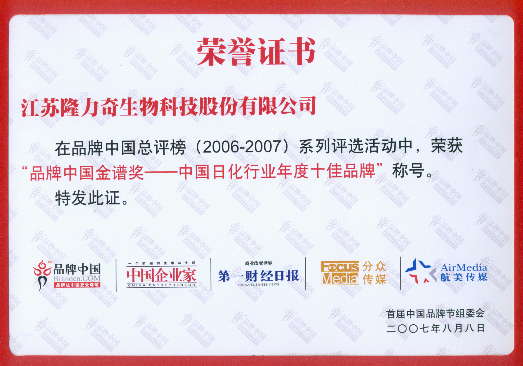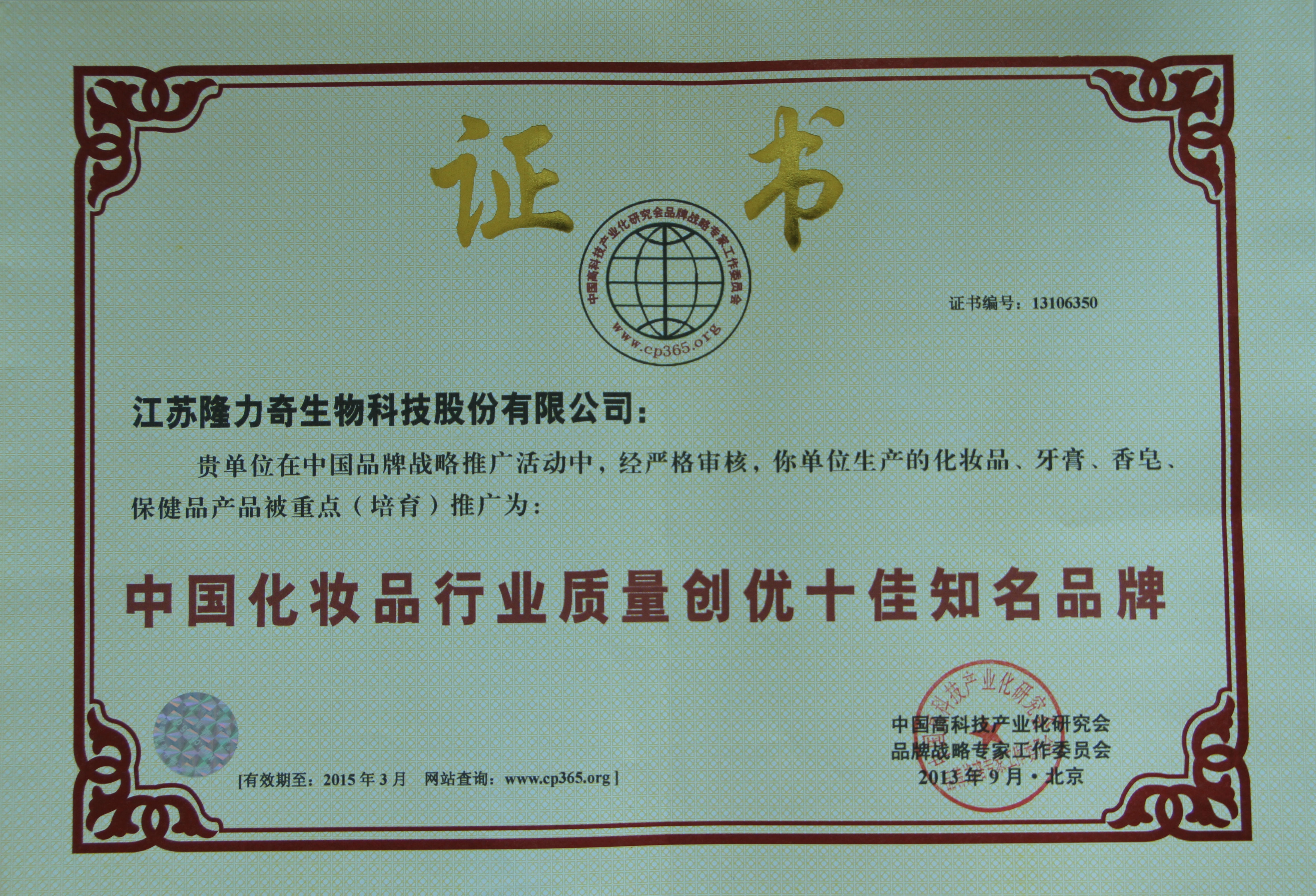 隆力奇集團通過30余年的長足發展,目前已經成為國內民族日化領軍品牌。先后獲得“中國名牌產品”、“中國馳名商標”、“消費者最喜愛的中國品牌”、“十大最具國際競爭力品牌”、“中國民營企業品牌競爭力50強”、”第二十屆中國美容博覽會領銜品牌”、隆力奇牌護手霜連續多年產品銷量遙遙領先。