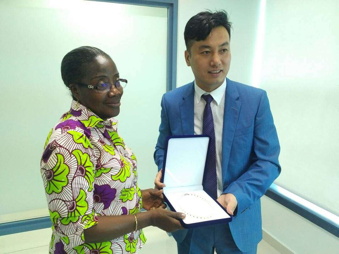 7月26日上午,錢總和加納分公司總經理陳勝華以及領導人Solomon和Andy,共同會見了加納第二夫人,對夫人百忙中抽空參加 6月10日的加納分公司二周年慶典及發車大會表示感謝,并隨贈了分公司新品女士能量項鏈。加納第二夫人對我們的產品表示高度贊揚和認可,并從女性的角度,表示隆力奇能夠為加納更多的年輕女性提供就業創業的平臺。