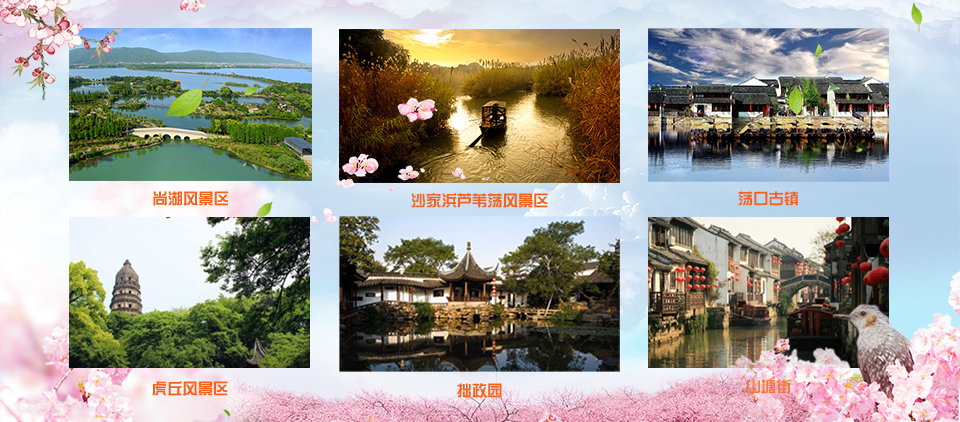 短線游含周邊蕩口風景區、沙家浜風景區、永聯隆力奇、虞山尚湖風景區、拙政園、平江路、山塘街、虎丘、寒山寺等多個著名旅游風景區。